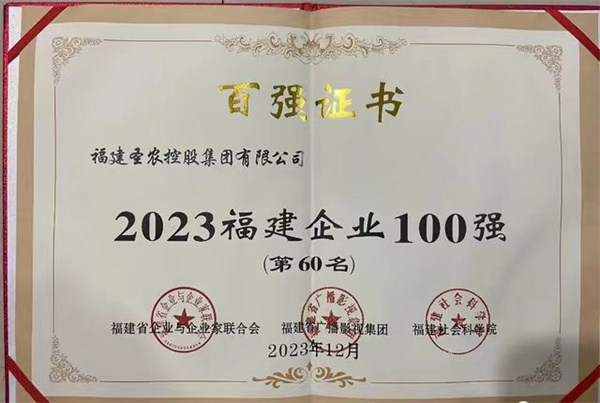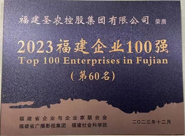 12月19日,福建省企业与企业家联合会、福建省广播影视集团、福建社会科学院联合发布了2023年福建企业100强榜单。圣农集团蝉联榜单,荣登“2023年福建省企业100强”第60名、“2023年福建制造业企业100强”第29名。与2022年相比,圣农集团排名分别由第67名提升至第60名,第36名提升至29名。